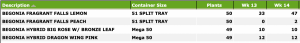 In the screenshot below, Begonia Fragrant Falls Lemon shows 47 available in Week 14, and 33 in Week 13. If 33 are booked in week 13, only 14 would be available to book in Week 14. Likewise, this screenshot indicates 10 trays of Big Rose Begonias available to ship through Week 14. If they are booked for Week 13, they are no longer available. A cumulative total of 10 Big Begonias can be booked through 14, rather than 10 in 13 and 10 in 14.