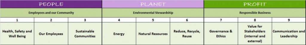 At NMG/MYP, we’ve mapped out our strategy into an “organizational chart” of 9 interwoven categories of sustainability. This visual representation of our strategy allows us to easily explain what initiatives fall under this umbrella, their benefits and how many of them serve multiple categories. This chart also provides an ongoing record of our wins and successes that we can continue to build on each year.